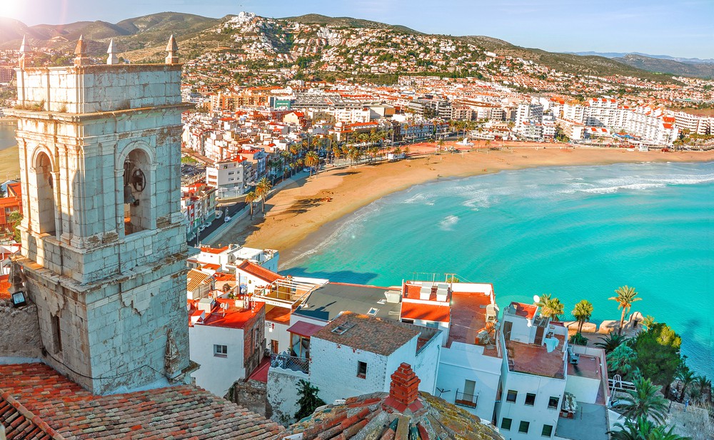 Previous Image Next Image view-of-the-sea-from-a-height-of-pope-lunas-castle.-valencia-spain.-peniscola.-castell.-the-medieval-castle-of-the-knights-templar-on-the-beach.-beautiful-view-of-the-sea-and-the-bay